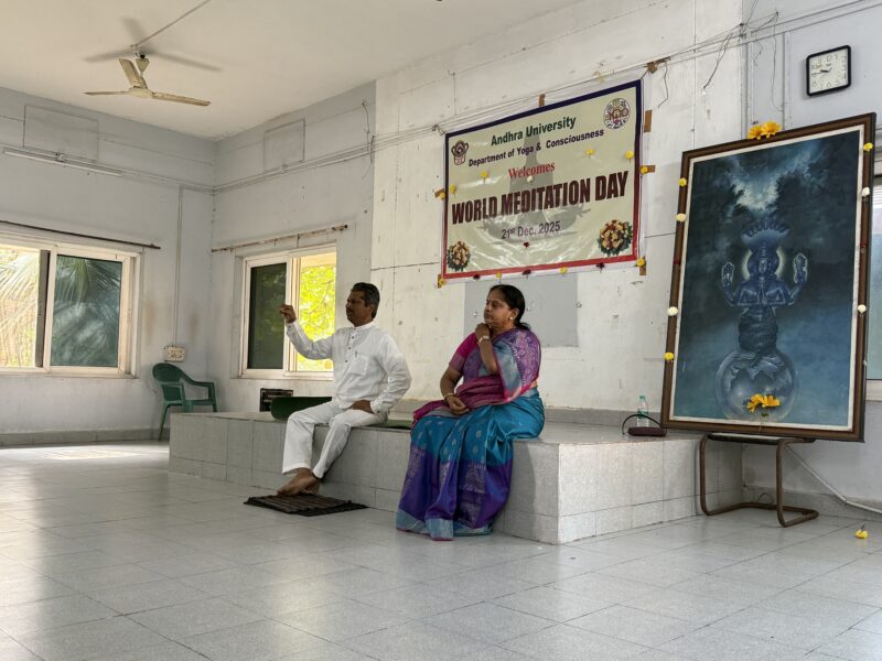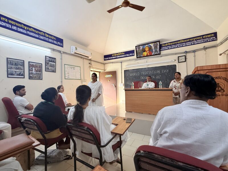 第2回 世界メディテーションの日の一コマです。国際ヨーガの日が 6月21日(夏至) に、世界メディテーションデーが 12月21日(冬至) に設定されています。インドではメディテーションは特別なことでも、ファッションでもなく日常の一部であると感じます。